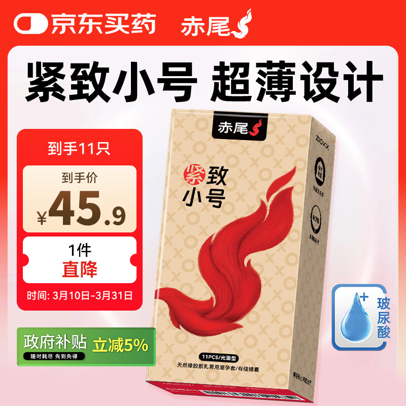 赤尾超薄避孕套 柔嫩紧致11只 小号安全套 玻尿酸避孕套 男女用