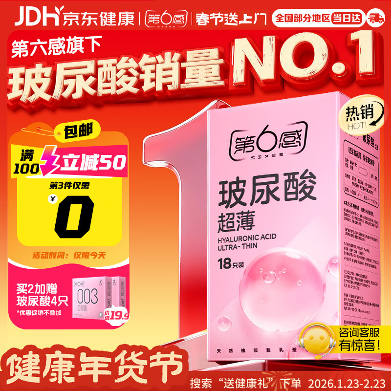 第六感避孕套 超薄玻尿酸18只 安全套套裸入男女用成人情趣用品byt年货