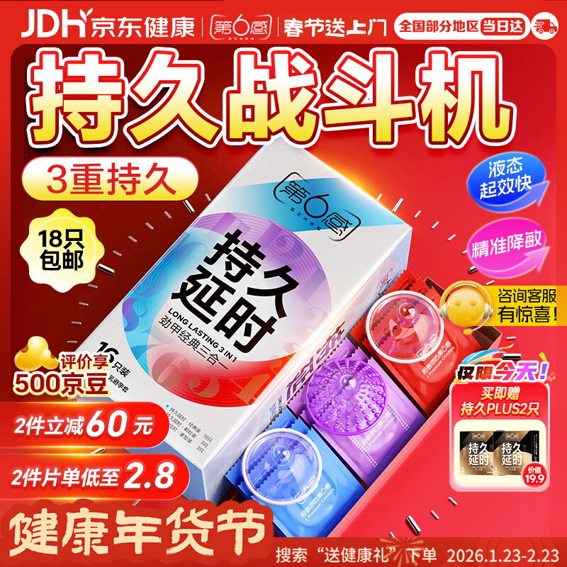 第六感避孕套 持久劲甲延时三合一18只含赠 安全套男专用持久防早泄年货