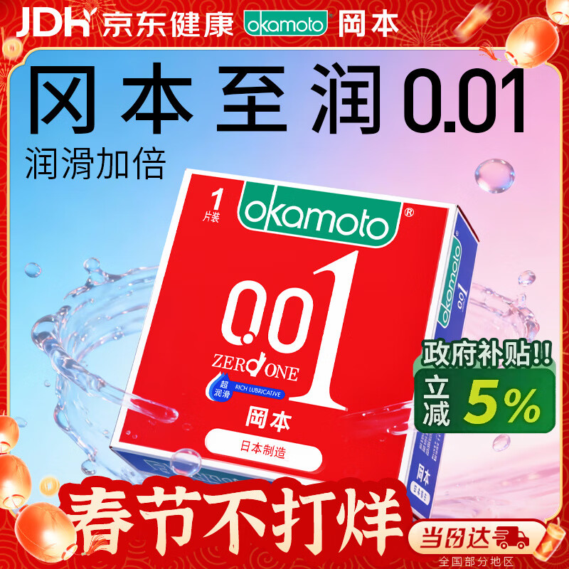 冈本(OKAMOTO)超薄避孕套 001超润滑1片 男女用聚氨酯安全套套成人情趣计生用品