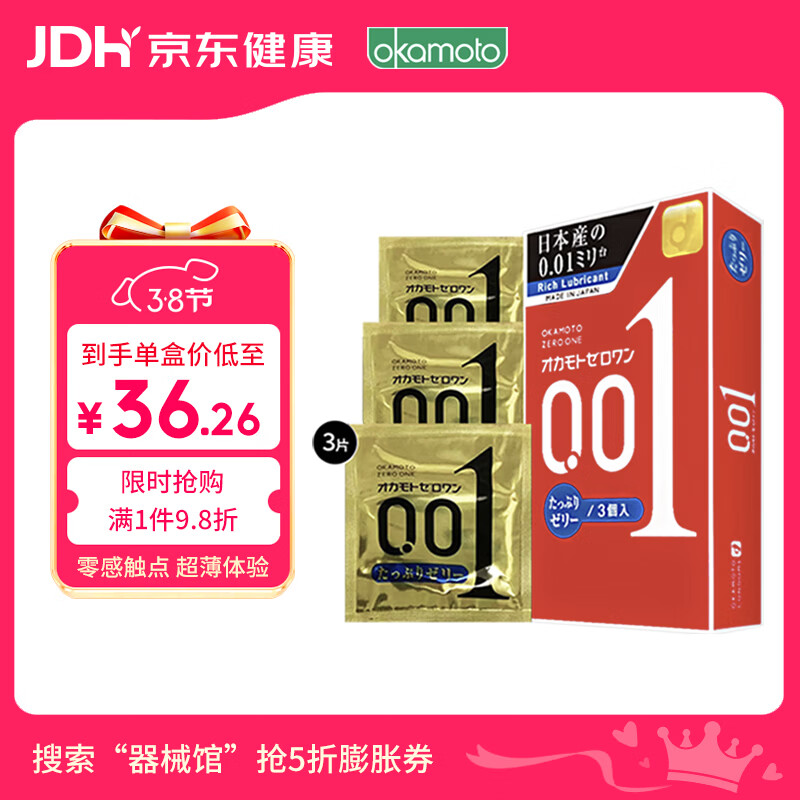 冈本001避孕套安全套超薄标准双倍润滑3只装套套成人情趣计生用品进口