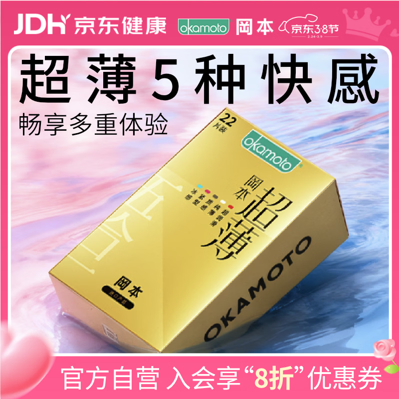 冈本(OKAMOTO)避孕套 超薄鎏金礼盒装22片 润滑裸感男女用安全套套成人计生用品