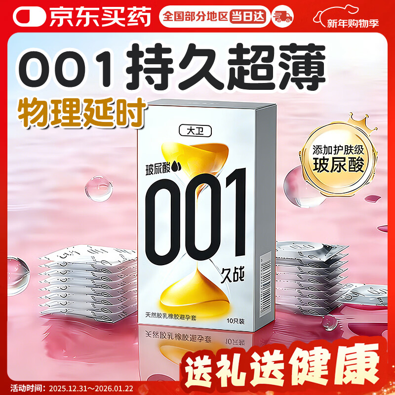 大卫避孕套超薄0.01隐形裸入玻尿酸安全套男用物理延时快感持久套套