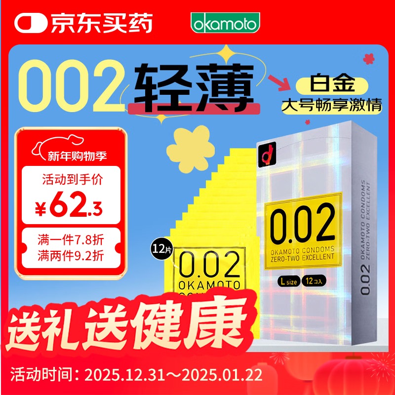 冈本 避孕套 安全套002超薄大号L码12只套套成人情趣计生用品日本进口